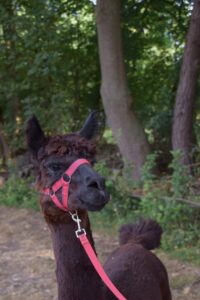 Per twee of drie personen gaat er 1 alpaca mee. Uiteraard zullen we onderweg regelmatig wisselen van alpaca zodat iedereen een leuke ontmoeting met alle dieren kan hebben.